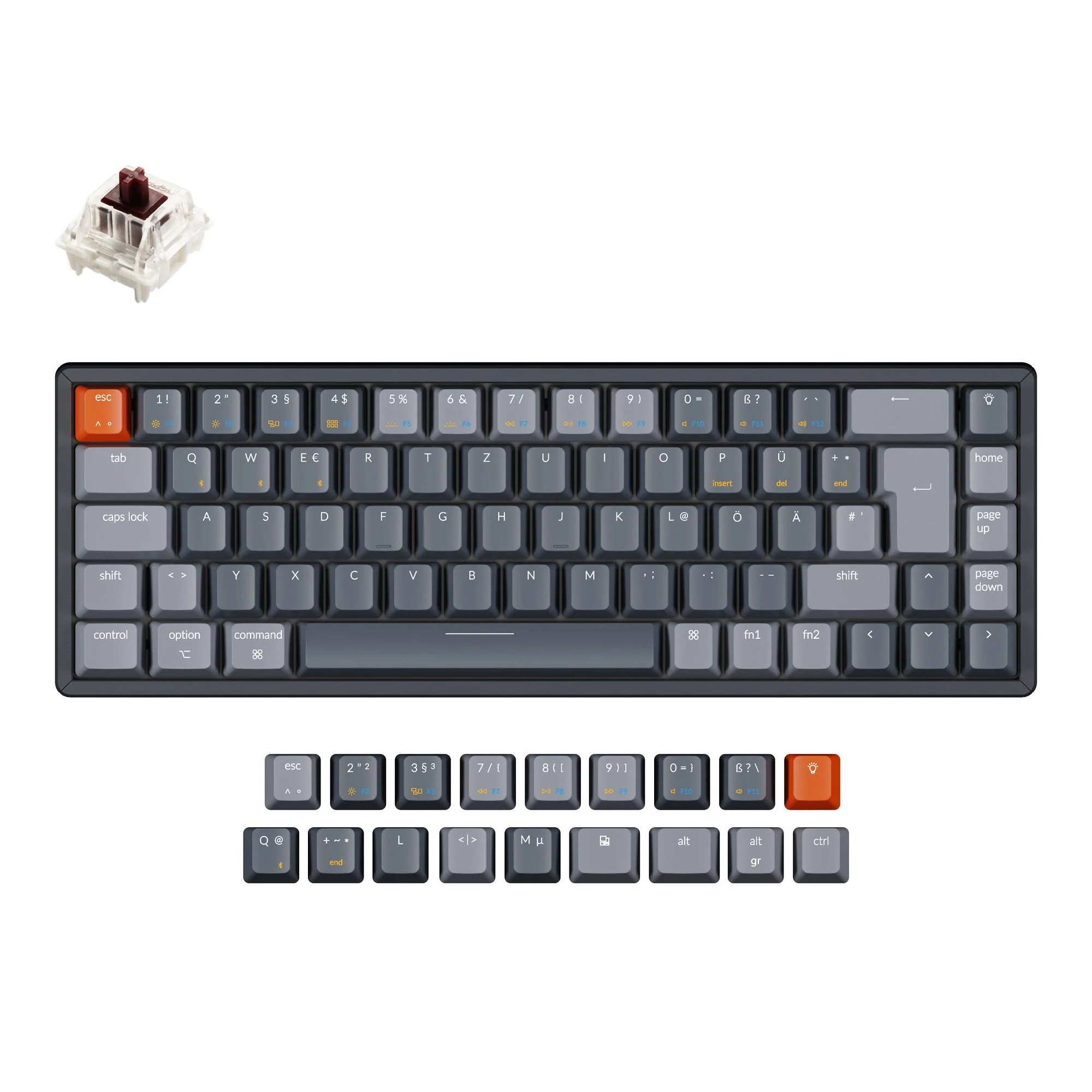 Keychron K6 65% Compact Wireless Mechanical Keyboard (German ISO-DE Layout) has included keycaps for both Windows and macOS, and comes with QWERTZ layout, and users can hotswap every switch in seconds with the hot-swappable version.